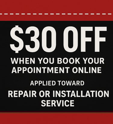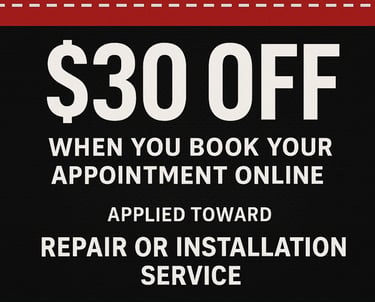 Book your appointment online and get $30 off your repair or installation service